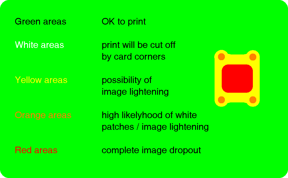 This means that in these distorted areas there will be patches that cannot be printed, and so the plain white background of the card will show through.